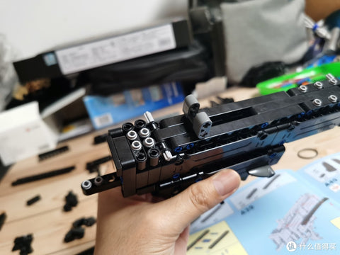 After the assembly, this is the assembled appearance. It's really similar to the real object. Bullets can be stored in a magazine and can be put together on a grab